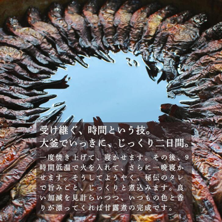 【ふるさと納税 】 " 虹鱒の甘露煮(ニジマスノカンロニ)" <5尾入り/10尾入り>≪一尾ずつ串打ち → 素焼き → 低温9時間煮込→一晩寝かせて→甘露煮(味入れ)仕上げ≫ 丸二日間全工程を手仕事で六十余年、親子三代で受け継ぐ伝統の味をぜひ。【長野県 信濃町 】