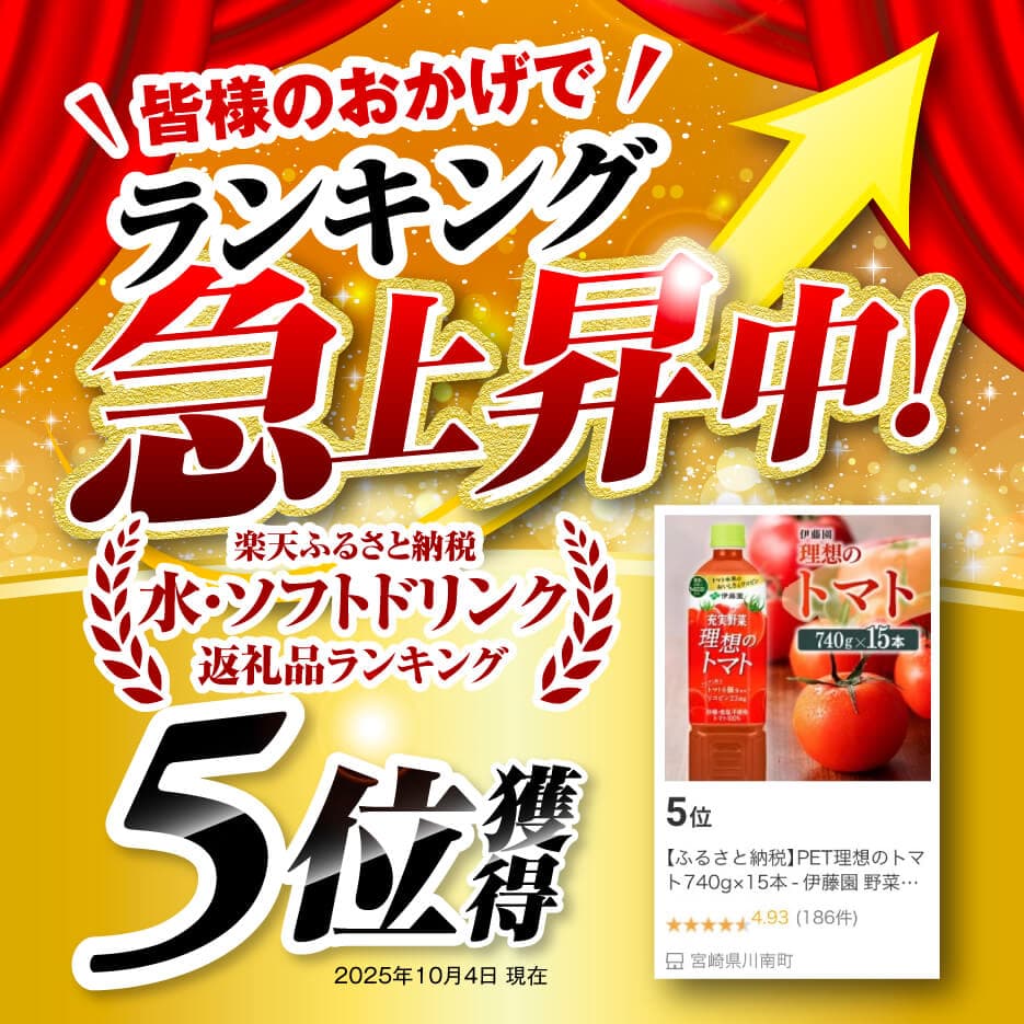 - 【ふるさと納税】PET理想のトマト740g×15本 - 伊藤園 野菜飲料 野菜ジュース 飲料類 セット ジュース ソフトドリンク ケース PET ペットボトル 野菜 とまと 美容 健康 備蓄お中元 ギフト プレゼント お歳暮 お年賀 送料無料 宮崎県 川南町 E7321