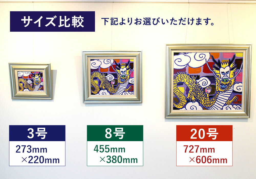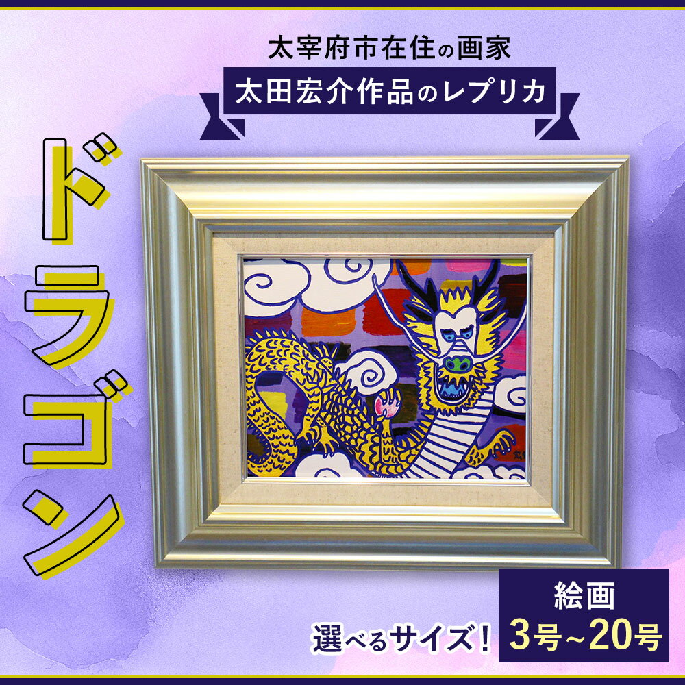 【ふるさと納税】<選べるサイズ>ドラゴン 絵画 F3号(273mm×220mm) / F8号(455mm×380mm) / F20号(727mm×606mm) 額入り アクリル絵具 木材額 龍 レプリカ インテリア 家具 リビング 玄関 福岡県 太宰府市 送料無料