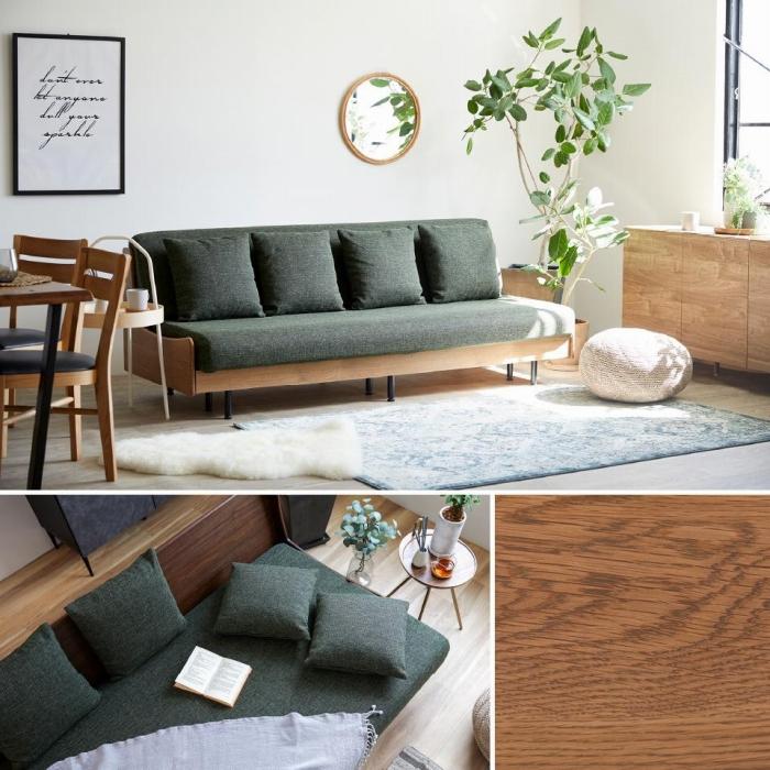 【ふるさと納税】ソファベッド エスタートプレミアム 200cm:フレーム2色対応×グリーン【モーブル/大川家具】 | ソファ ソファーベッド 洗える 2人掛け 3人掛け 脚付き 一人暮らし 無垢材 日本製 寝心地 家具 シングルベッド
