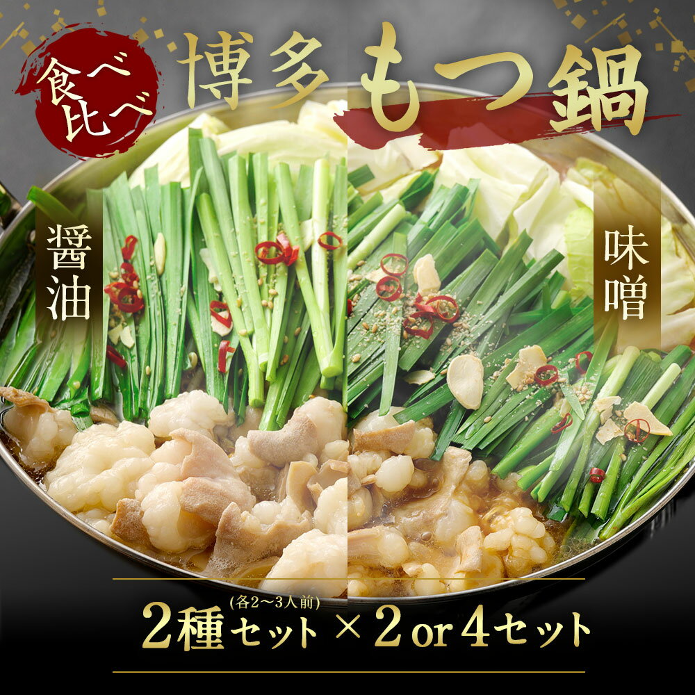 - 【数量限定】食べ比べ博多もつ鍋2種(2〜3人前×2セット) もつ鍋 国産牛もつ 醤油 味噌 ちゃんぽん麺 ホルモン鍋 送料無料 鍋