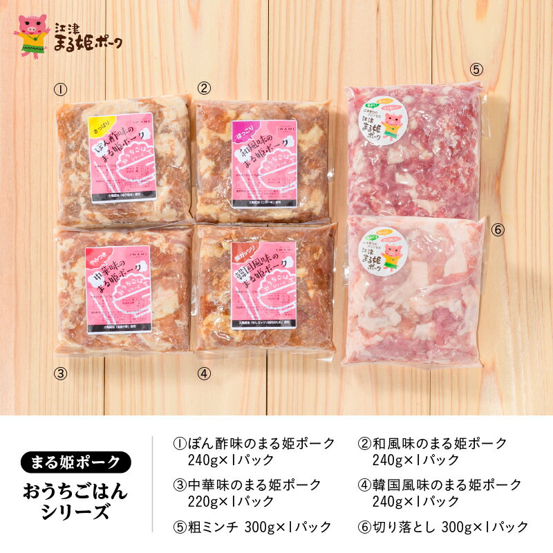 【ふるさと納税】まる姫ポーク おうちごはんシリーズ(和風味/韓国風味/ぽん酢味/中華味/切り落とし/粗ミンチ)のまる姫ポーク【AK-30】|送料無料 国産 豚肉 味付き肉 挽き肉 挽肉 切落し ミンチ 焼肉 やきにく バーベキュー 小分け パック 江津市|
