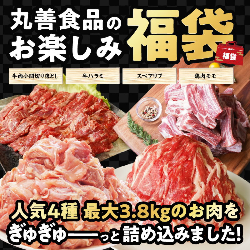 - 【ふるさと納税】お楽しみ福袋 4種 1.9kg / 3.8kg 切り落とし 牛ハラミ スペアリブ 鶏肉 小間切り落とし 骨付き 厚切り 国産豚 鶏もも肉 氷温熟成牛 牛肉 氷温熟成豚 極味付け 豚肉 熟成肉 氷温熟成 作り方 ふるさと納税オリジナル 限定 送料無料 肉の泉佐野 年内発送