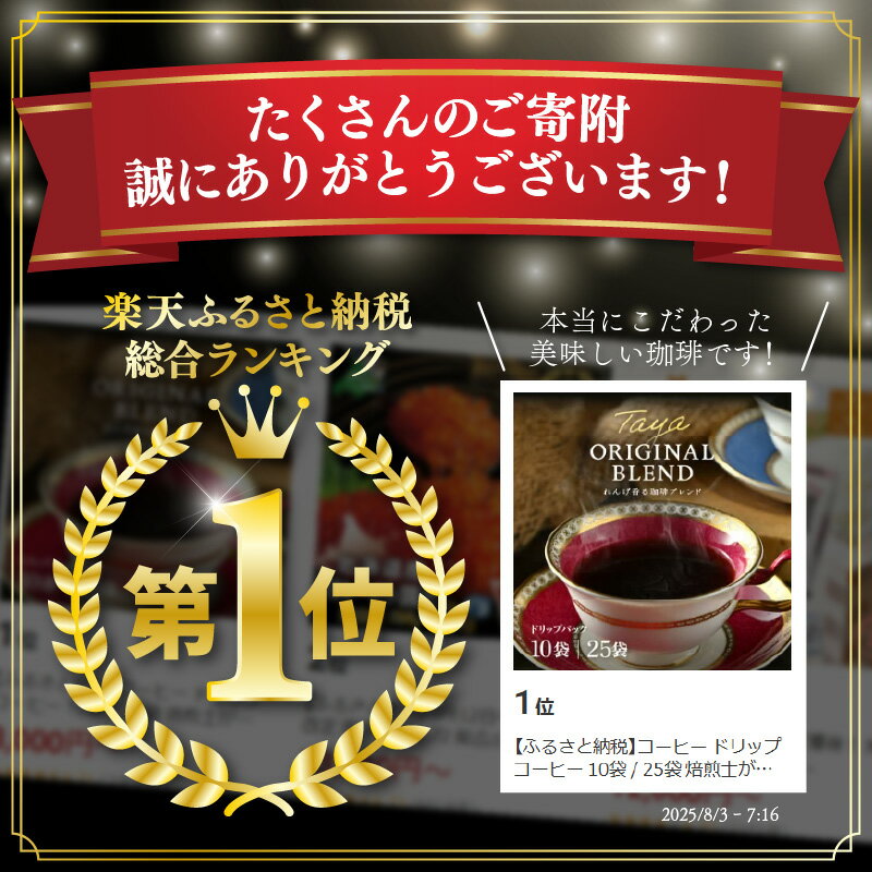 - 【ふるさと納税】楽天1位 焙煎即出荷 ドリップコーヒー 10袋 / 25袋 バリスタ焙煎士絶賛 ブレンド珈琲 ドリップバッグ ブラジル コロンビア グアテマラ ドリップパック 人気 本格的 美味しいコーヒー ミル 香り 簡単 田谷珈琲 たやコーヒー