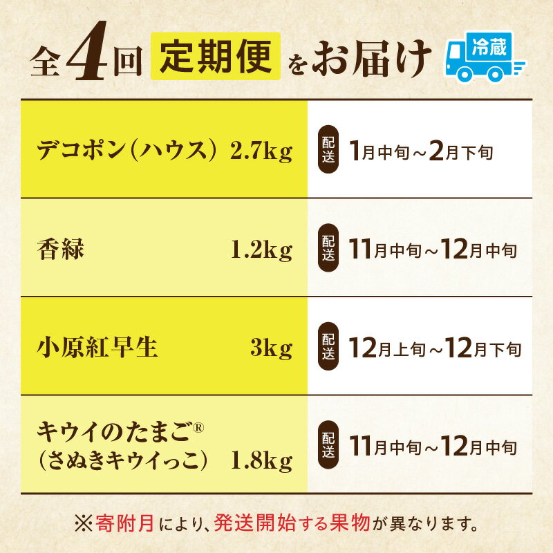 - 【ふるさと納税】季節の恵み4回定期便F 果物 フルーツ 青果 青果物 デザート スイーツ 果実 旬 季節 旬の果物 季節の果物 生鮮食品 生鮮 贈答 贈り物 ギフト プレゼント おすそ分け ご褒美 人気 グルメ お取り寄せ 特産品 特産 国産 香川県 三木町