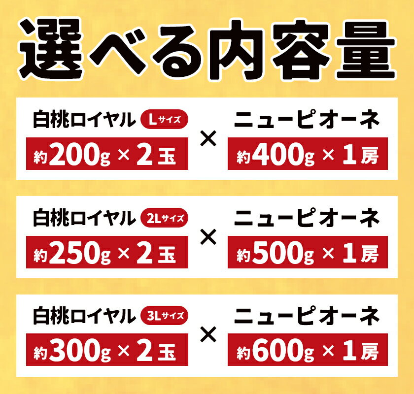 - 【ふるさと納税】【2026年先行予約】岡山県産 白桃ロイヤルニューピオーネ詰合せ 選べる 計800g~計1.2kg 株式会社はちや《2026年7月上旬‐8月下旬頃出荷》岡山県 浅口市 白桃 桃 ぶどう 葡萄 フルーツ ギフト 果物 デザート 国産 送料無料【配送不可地域あり】