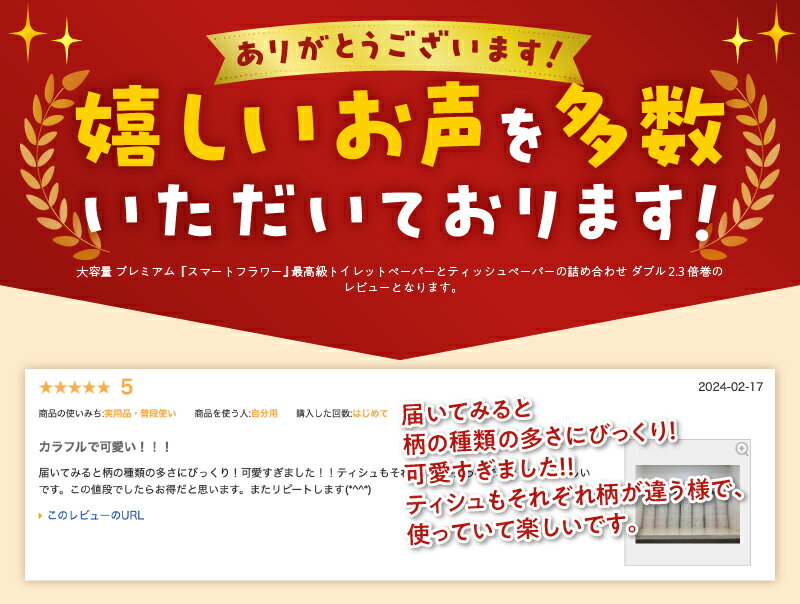 - 大容量 プレミアム『スマートフラワー』 最高級トイレットペーパーとティッシュペーパーの詰め合わせ ダブル 2.3倍巻 贈答 日用品 富士