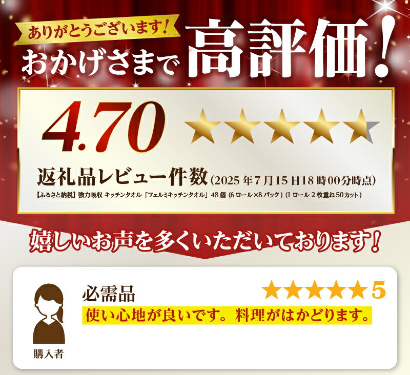 - 【ふるさと納税】 強力吸収 キッチンタオル「フェルミキッチンタオル」48個 (6ロール×8パック) (1ロール 2枚重ね 50カット) キッチンペーパー クッキングペーパー ペーパータオル 備蓄 日用品 生活用品 消耗品 富士市 [sf002-119]