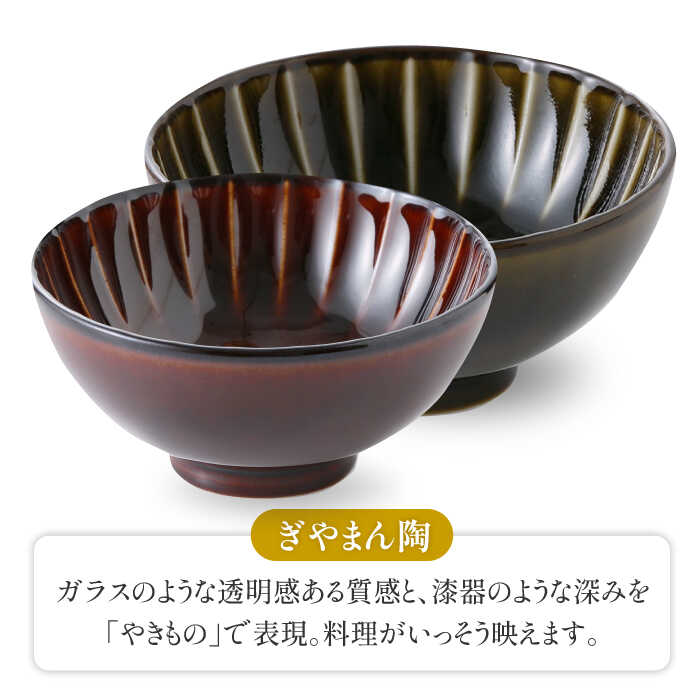 - 【ふるさと納税】【美濃焼】ぎやまん陶 カロリー茶碗 2個セット 利休グリーン(Lサイズ)×漆ブラウン(Mサイズ)【カネコ小兵製陶所】【TOKI MINOYAKI返礼品】食器 ご飯茶碗 ペア [MBD090]