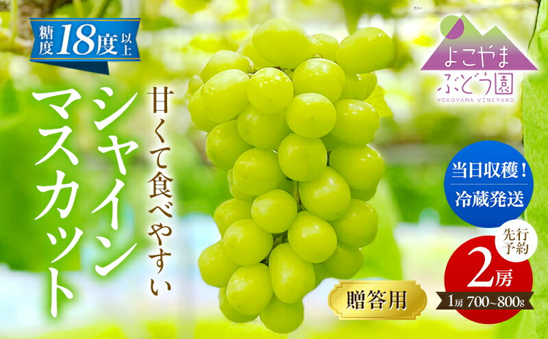 【ふるさと納税】先行予約 [贈答用/熨斗なし化粧箱] 甘く食べやすい シャインマスカット 2房(1房 700~800g)<出荷時期:2025年9月下旬~10月上旬ごろ>数量限定 期間限定 果物 フルーツ ぶどう ブドウ マスカット ギフト お届け:2025年10月上旬~2025年10月中旬