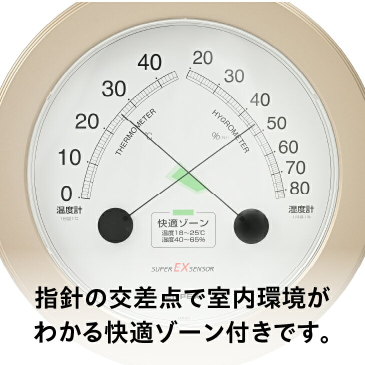 【ふるさと納税】【10月1日より価格改定】 スーパーEX高品質温・湿度計 EX-2738 温度計 高精度 本格派 感染症対策 健康管理 メタリック調 大きな文字盤 インテリア 快適ゾーン付き アナログ式 電池不要 壁掛け用 計測器 みずさわ気象計器 エンペックス社 [AJ081]