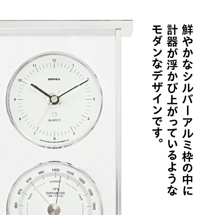 【ふるさと納税】【10月1日より価格改定】 スーパーEXギャラリーS気象計・時計 EX-953 みずさわ気象計器 温度計 湿度計 気圧計 健康管理 気象病対策 気象観測 モダン インテリア 縦置き 横置き 卓上用 シルバーアルミ枠 [AJ072]