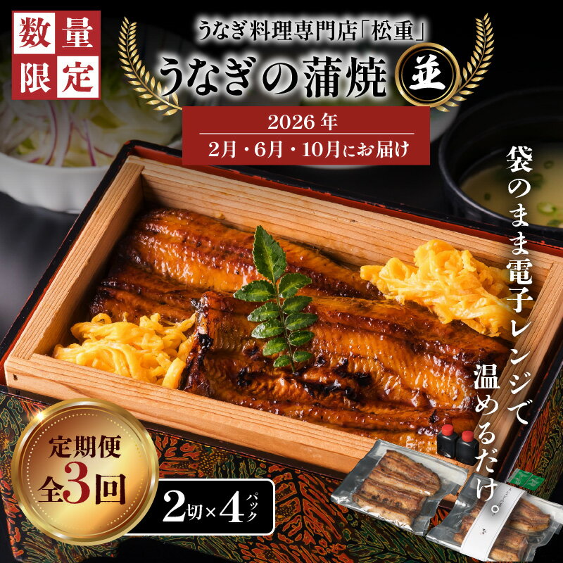 - 【ふるさと納税】 全3回 定期便 うなぎ料理 専門店 松重 まつじゅう 【 並 】 うなぎ 蒲焼 2切(1尾)× 4パック 【2・6・10月お届け】 定期 鰻 ウナギ うな重 うな丼 ひつまぶし 土用 丑の日 数量 期間 限定 鹿児島 おすすめ ランキング プレゼント ギフト