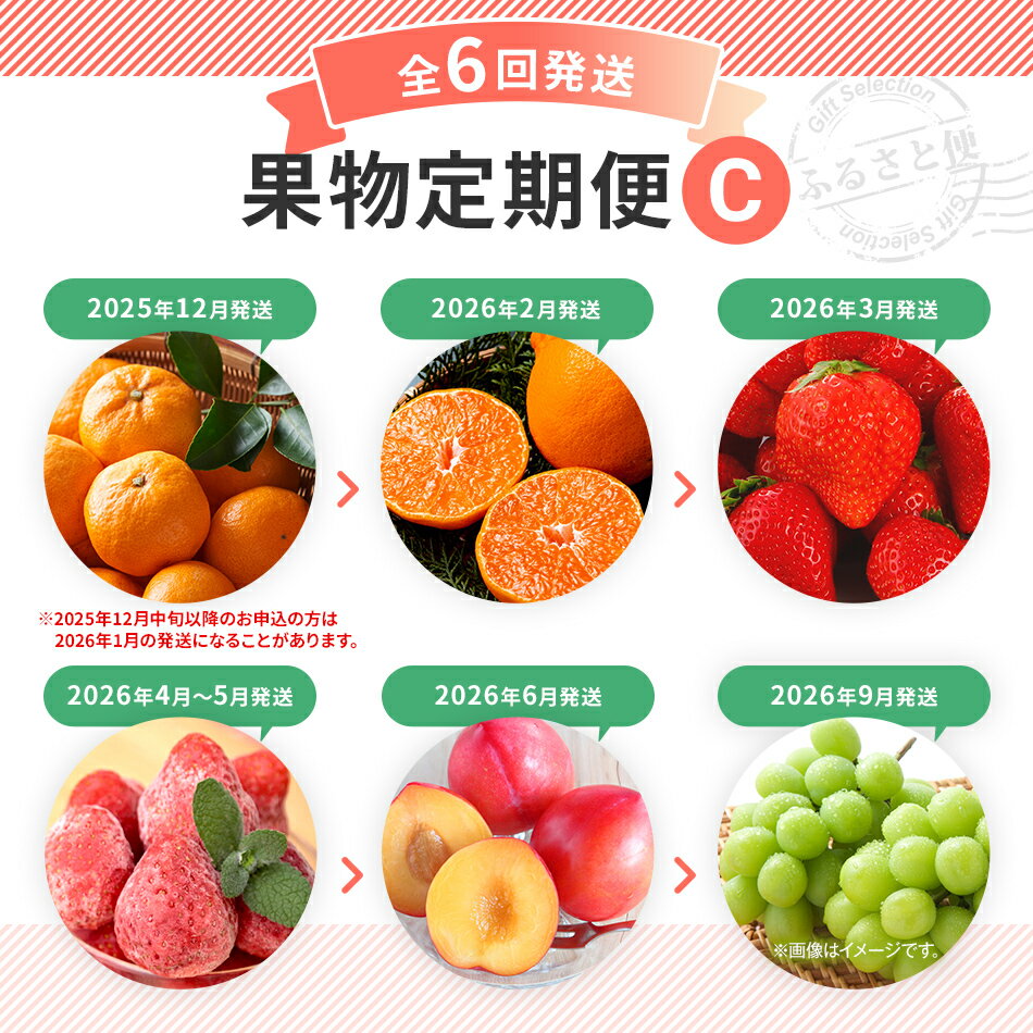 - 【ふるさと納税】定期便 果物定期便C 6回発送 みかん デコポン 博多あまおう 冷凍あまおう すもも シャインマスカット 定期発送 果物 くだもの フルーツ 柑橘 イチゴ 送料無料 【2025年12月〜2026年9月まで計6回お届け】