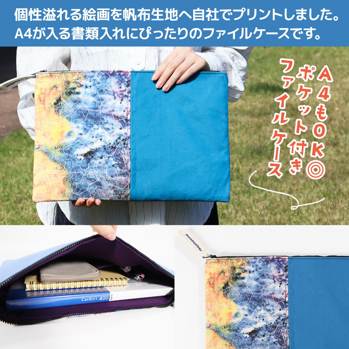 - 【ふるさと納税】AE007 ファイルケース『海はありし日のまま・ブルー』 ハンドメイド A4 書類 収納 ケース 書類入れ かわいい ブルー