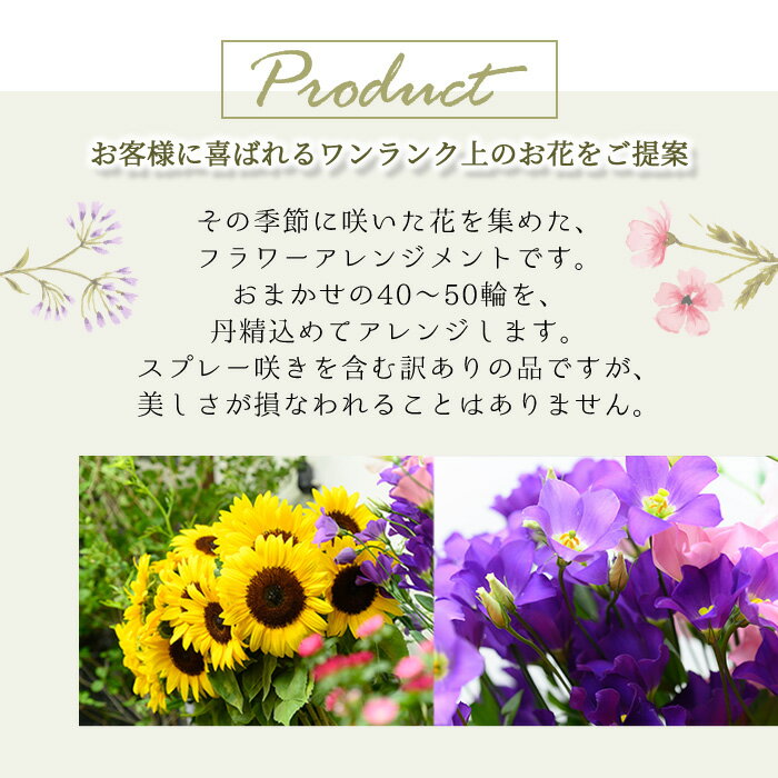【ふるさと納税】<訳あり>季節の花 フラワーアレンジメント おまかせ(40~50輪) 花束 家庭用 インテリア フラワー 花 花屋 季節 春夏秋冬 【uj-FF001】【京の花織りHanamasa】