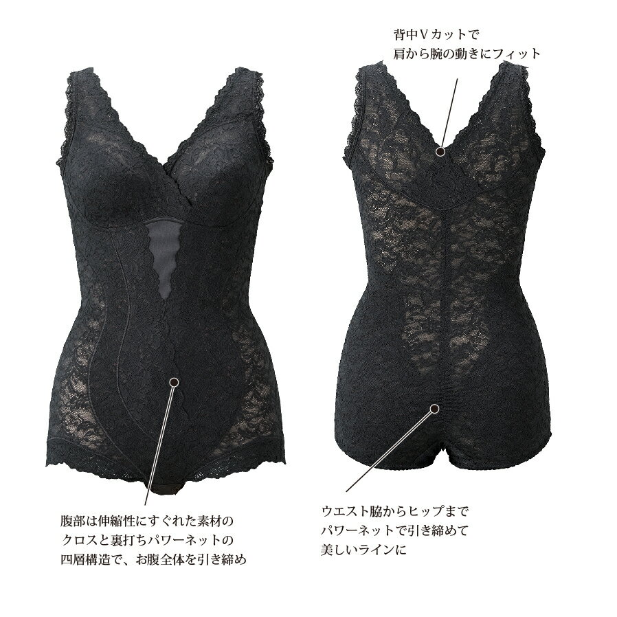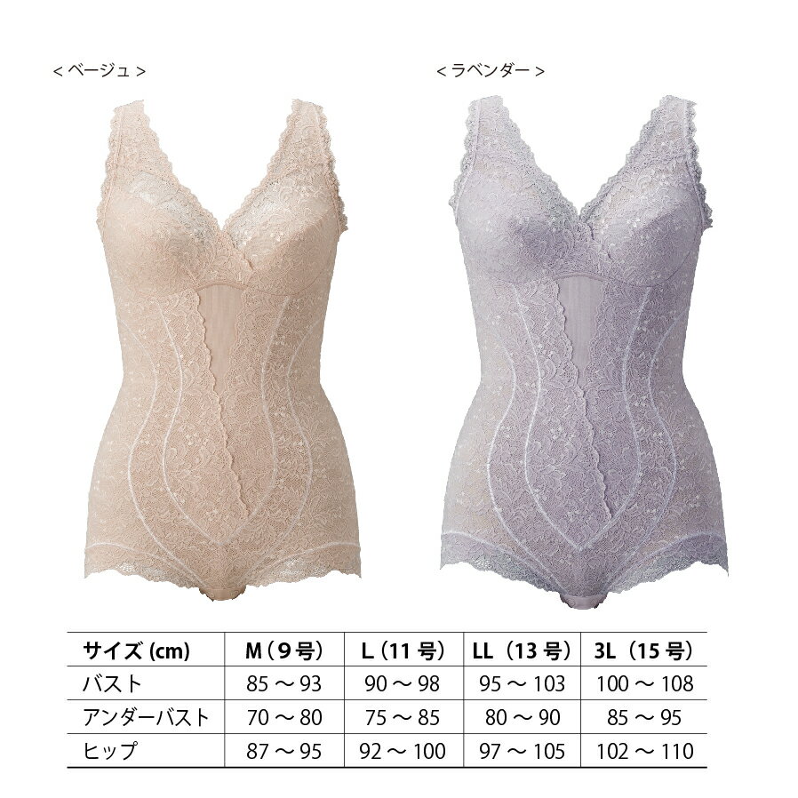 - 【ふるさと納税】 ボディスーツ 選べる カラー サイズ ベージュ ラベンダー ブラック M L LL 3L レディース インナー 日本製 補正 下着 レース スタイルアップ 美・REINE オリジナル 総レース お腹 背中 お尻 背筋 姿勢 サポート ギフト プレゼント 母の日 滋賀 彦根