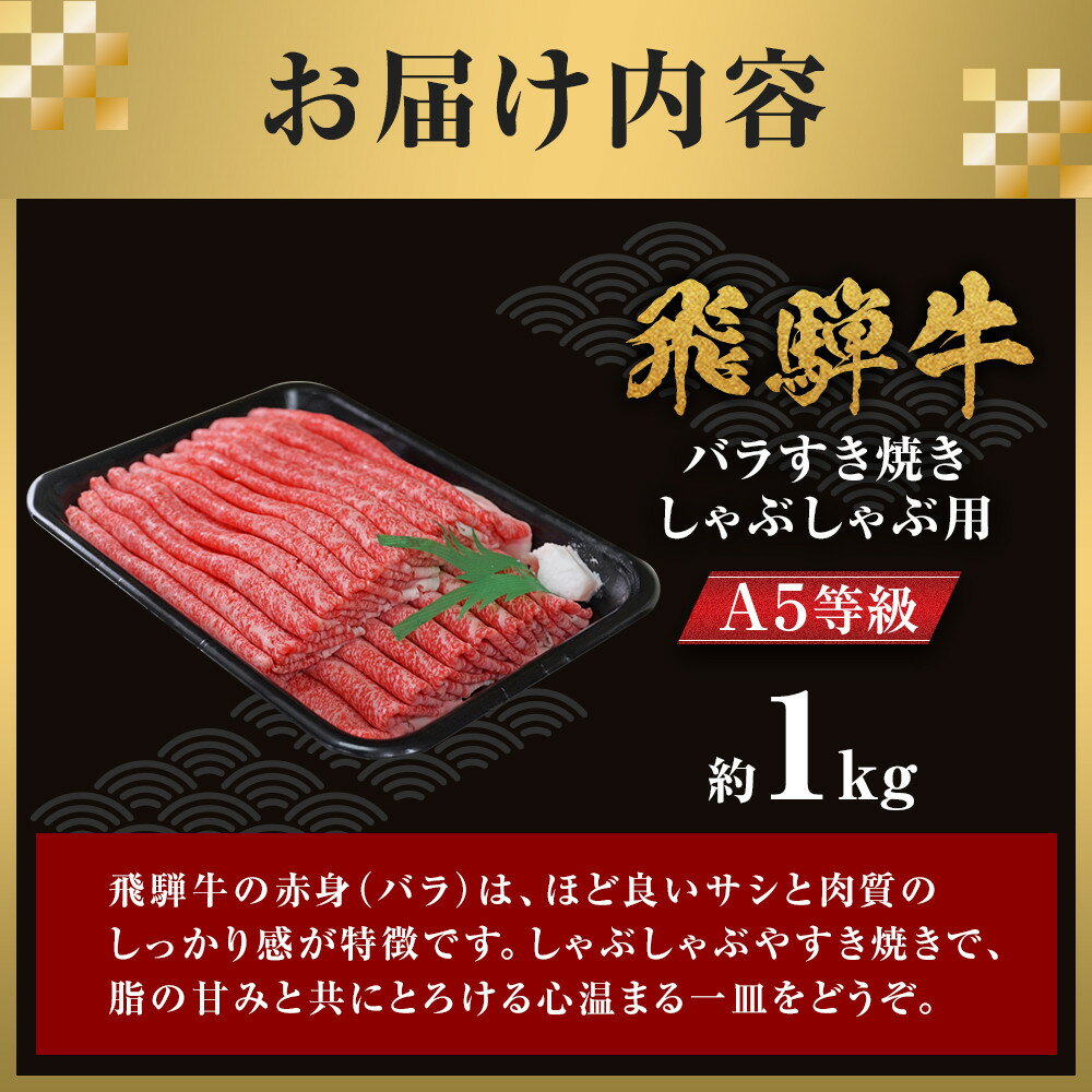 【ふるさと納税】【A5等級】飛騨牛バラすき焼き・しゃぶしゃぶ用1kg | A5等級 牛肉 肉 和牛 国産牛 飛騨牛 すき焼き しゃぶしゃぶ 人気 おすすめ 送料無料