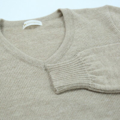 【ふるさと納税】ベビーアルパカ100%セーター レディース Vネック ベージュ Mサイズ【1672919】