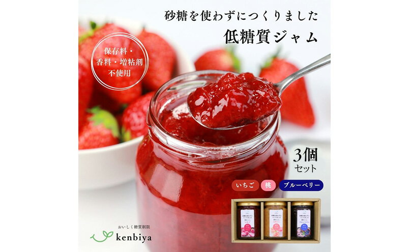 - 【ふるさと納税】低糖質 ジャム3瓶(いちご・ブルーベリー完熟もも) 甲斐市 スイーツ グルメ お取り寄せ