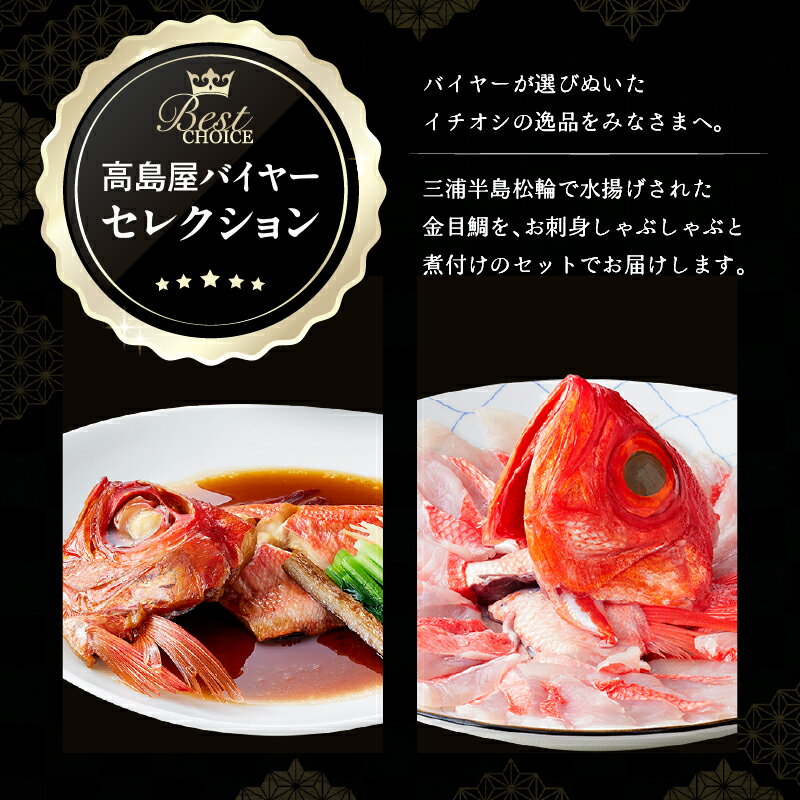 - 【ふるさと納税】【高島屋バイヤーセレクション】 地魚料理 松輪 松輪金目鯛 お刺身 しゃぶしゃぶ 煮付け セット 金目鯛 キンメダイ きんめだい 魚 高級魚 惣菜 希少品 三浦半島松輪 贅沢 ご褒美 お祝い 高島屋 神奈川県 三浦市 おすすめ ランキング プレゼント ギフト