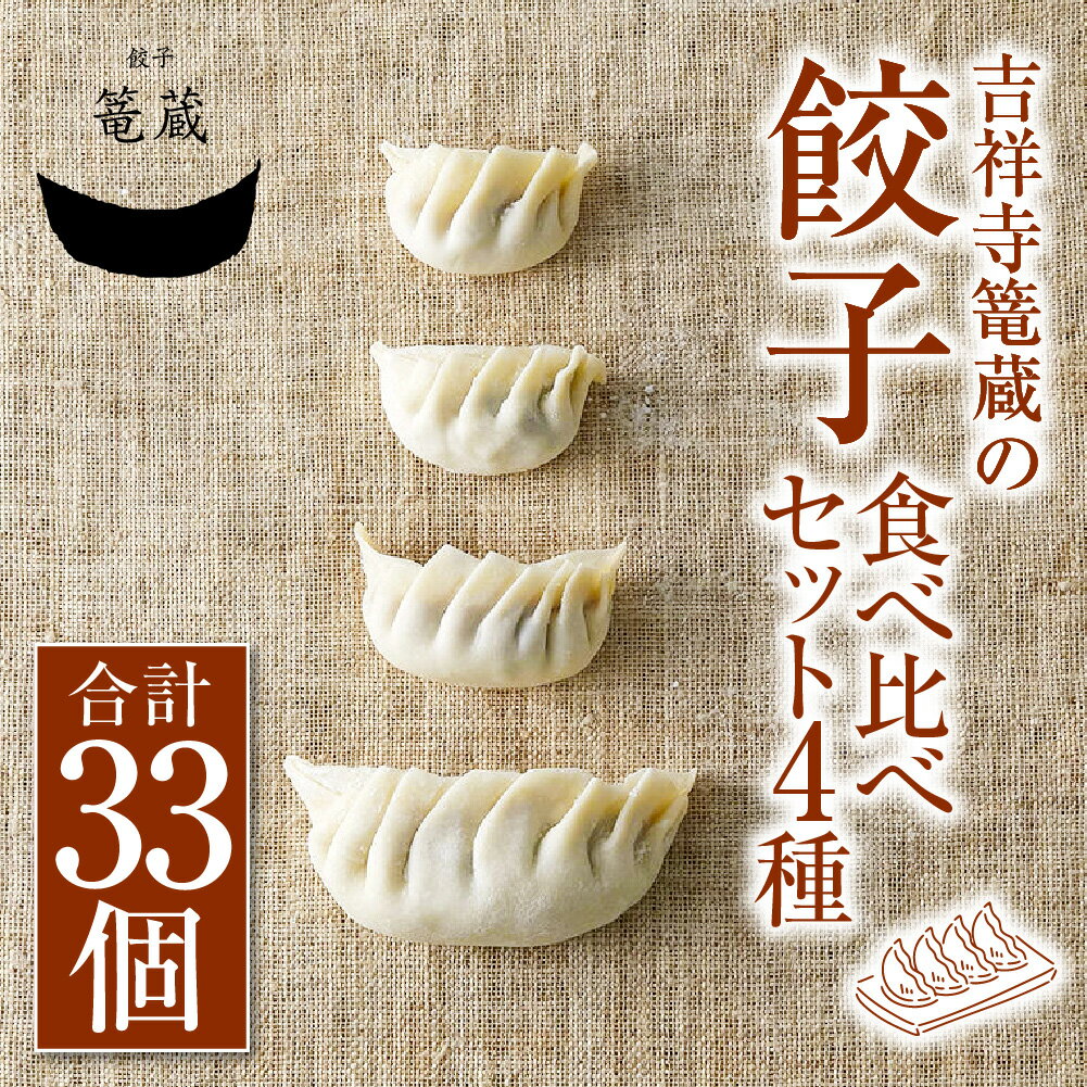- 【ふるさと納税】吉祥寺篭蔵の餃子 食べ比べセット 4種 計33個(餃子×10個・ひとくち餃子×12個・とりしそ餃子×6個・白金豚餃子×5個) キャベツ 豚肉 鶏肉 お肉 野菜 ギョウザ ギョーザ 中華惣菜 おかず ご飯のお供 国産 冷凍 東京都 武蔵野市 送料無料