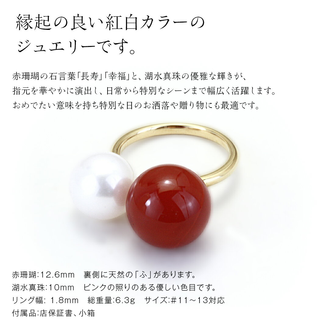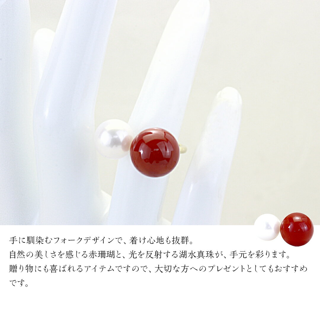 - 【ふるさと納税】おめでたい紅白カラーの『k18製 赤珊瑚 ・ 湖水真珠のフォークデザインリング』 リング パール 真珠 フォークデザイン 希少 フォーマル 冠婚葬祭 結婚式 成人祝い 結婚祝い お祝い プレゼント ギフト アクセサリー ジュエリー ジュエリーマーノ