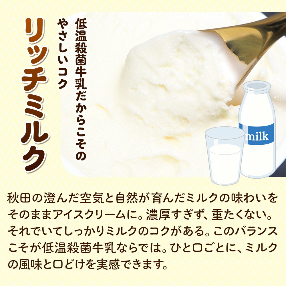 【ふるさと納税】秋田市産 鈴木牛乳の低温殺菌牛乳を使用したアイスクリーム 5種(リッチミルク、バニラ、ショコラ、キャラメル、ピスタチオ)