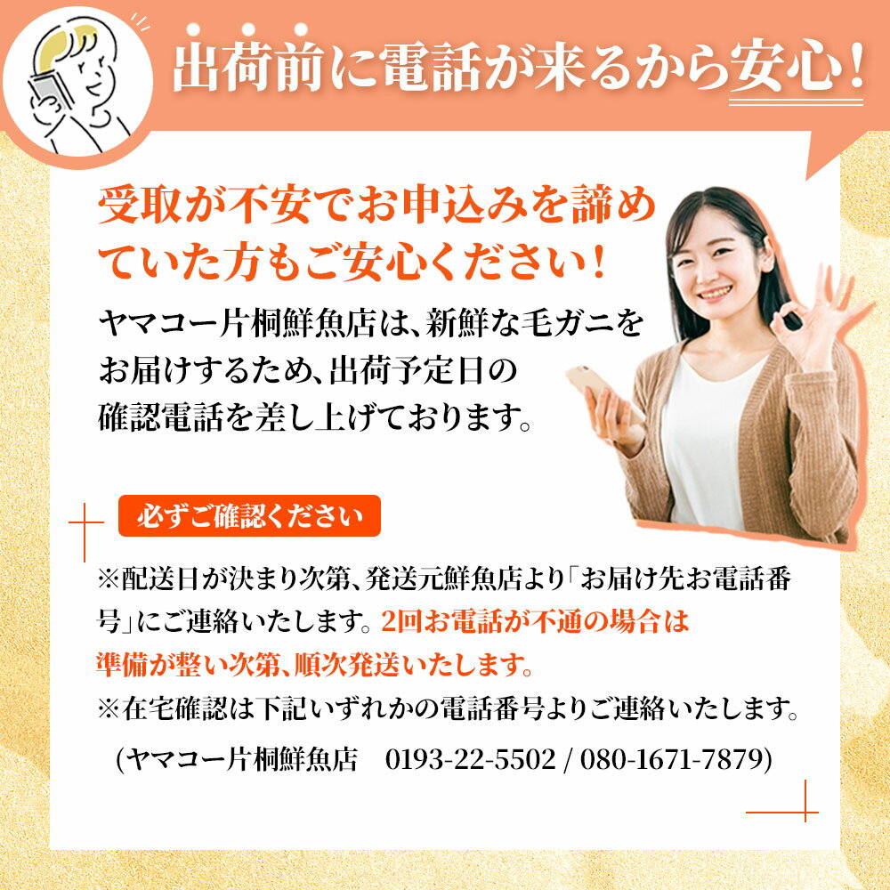 - 【ふるさと納税】< 先行予約> 【 発送前電話連絡 あり!】活毛ガニ 1杯 2杯 3杯 <令和8年2月上旬から4月頃お届け> 三陸産 毛がに 活 毛蟹 かに 海鮮 鮮魚 贅沢 魚介 岩手 釜石 豪華 新鮮 産地直送 生きたまま 事前連絡 電話 発送前連絡 岩手県