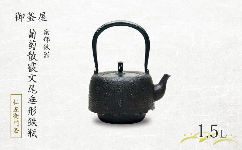 【ふるさと納税】【南部鉄器】葡萄散霰文尾垂形鉄瓶(ぶどうちらしあられもんおだれがたてつびん)1.5L 鉄瓶 やかん 急須 キッチン用品 伝統工芸品 最高級品 プレゼント 岩手県 盛岡市 御釜屋 鉄分 健康増進 鉄分摂取 お茶 美味しい 直火OK 錆びにくい