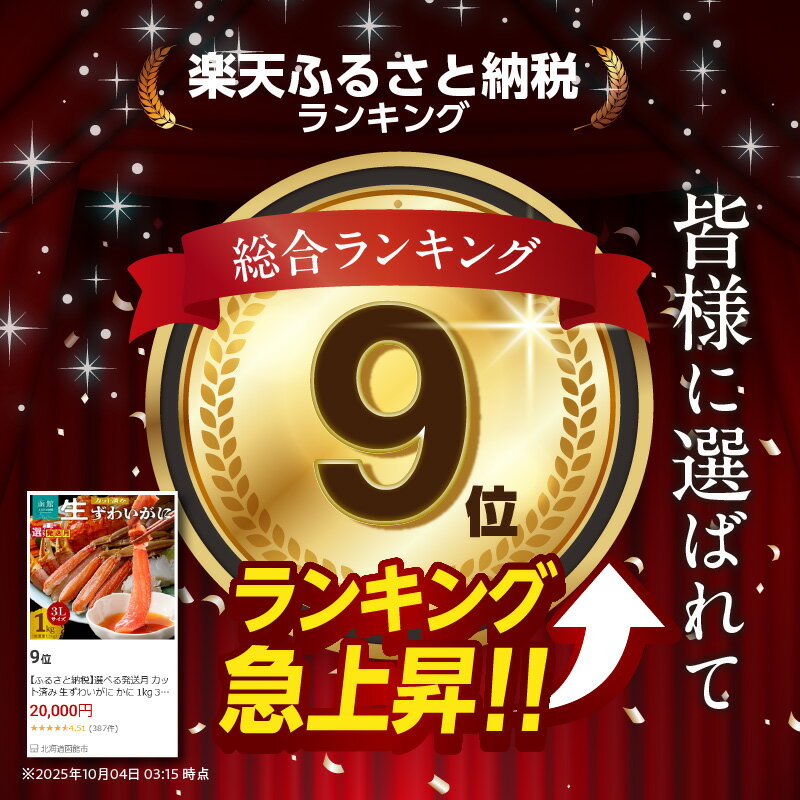 【ふるさと納税】選べる発送月 カット済み 生ずわいがに かに 1kg 3Lサイズ 食べ応え 抜群 脚 丸ごとカット 殻処理済み 手間いらず 簡単 お刺身 鍋 しゃぶしゃぶ カニしゃぶ 雑炊 焼きガニ ズワイガニ 海鮮 海の幸 魚介類 冷凍 北海道 函館市 送料無料