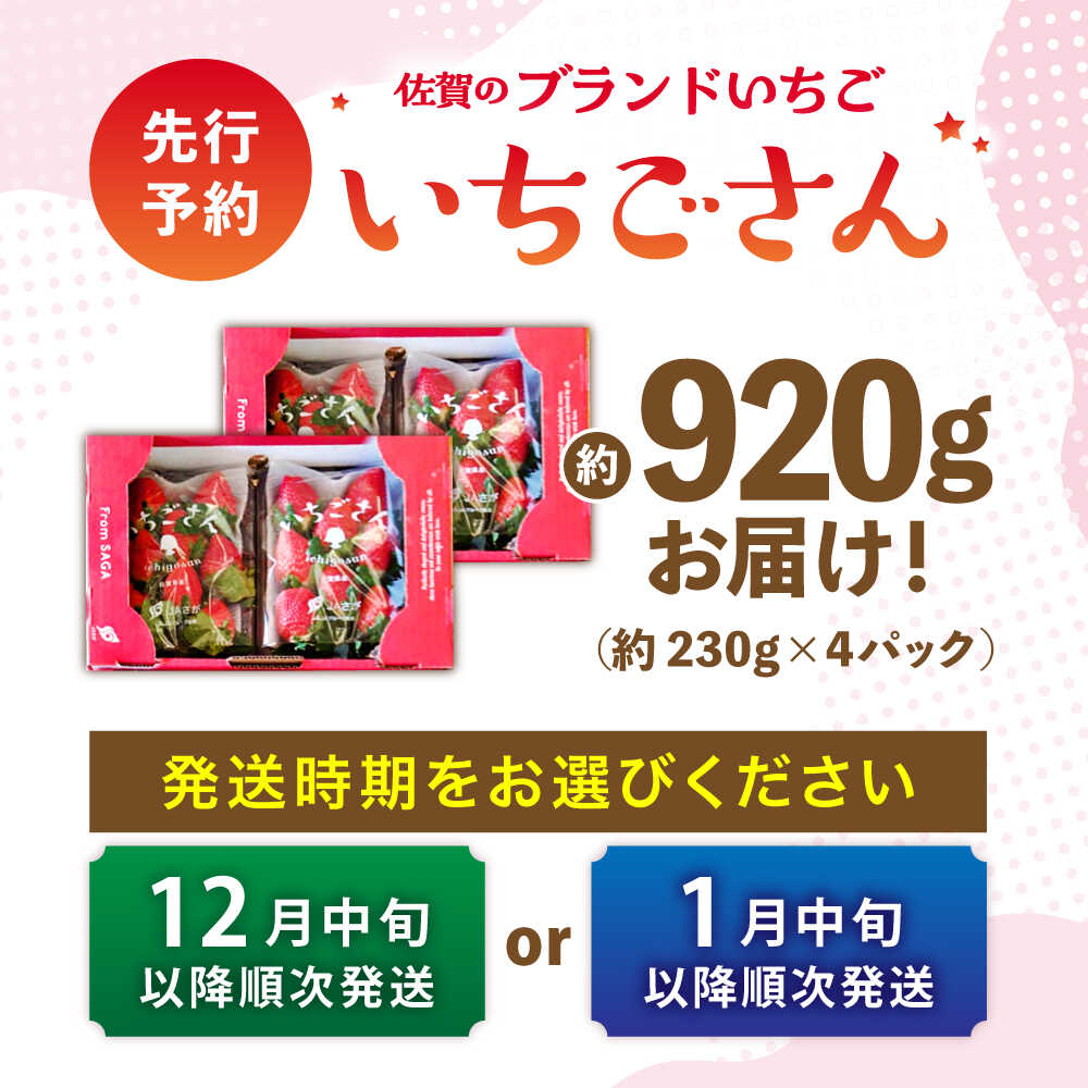 【ふるさと納税】【選べる発送時期】【先行予約】佐賀のブランドいちご いちごさん 約920g(約230g×4p)/中村青果店[UDK006]