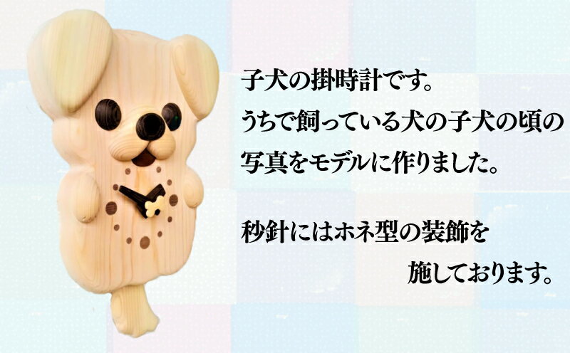 【ふるさと納税】 時計 木製 木の時計 壁掛け時計 振り子時計 無着色 無塗装 可愛い ペット 犬 イヌ コロ犬 オリジナル 手作り ハンドメイド 日用品 雑貨