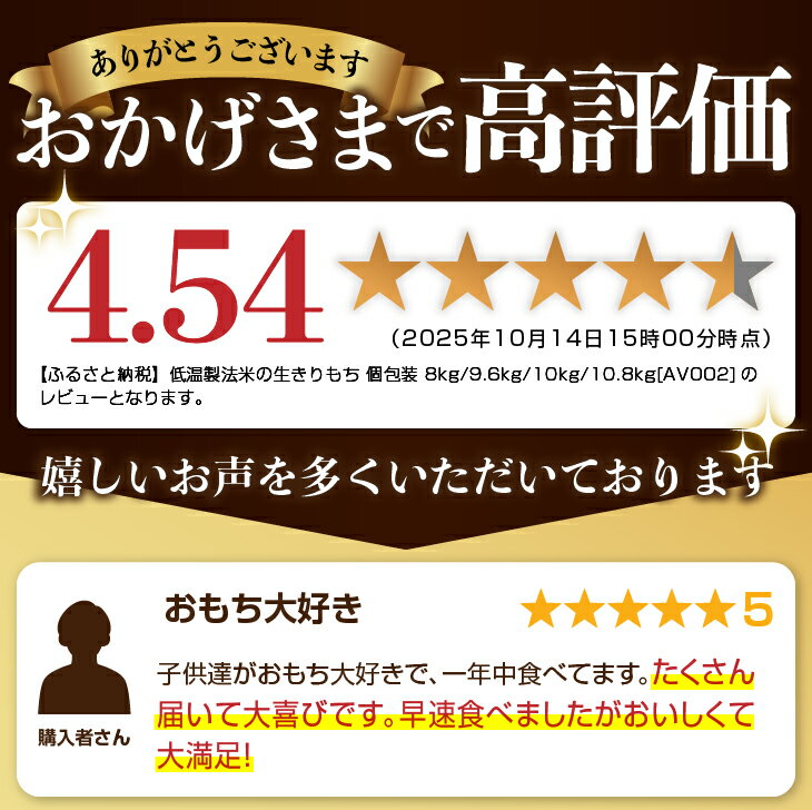 - 【ふるさと納税】 低温製法米の生きりもち 個包装 8kg/9.6kg/10kg/10.8kg アイリスオーヤマ 国産もち米100%使用 切り餅 おもち 保存食 正月 新年 [AV002]