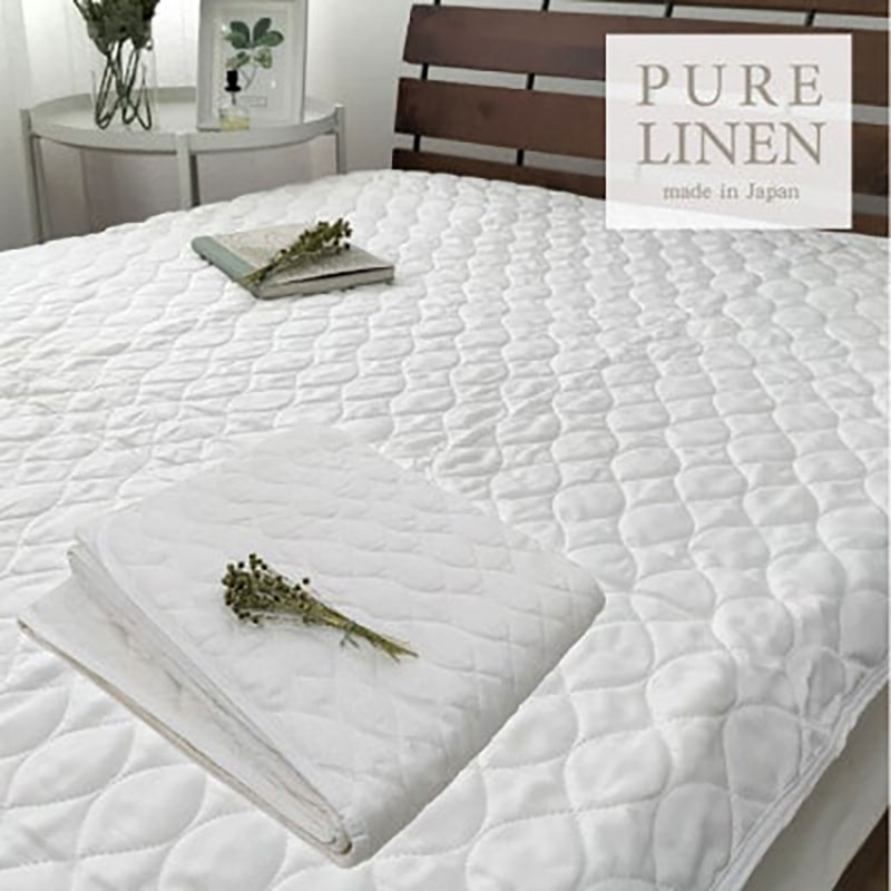 【ふるさと納税】敷きパッド セミダブル 120×205 ホワイト 艶やか リネン 100% 敷パッド ベッド パット パッド マット ベッドパッド シーツ 日本製 寝具 大阪府 岸和田市 お届け:お申し込み後、3週間程度で順次発送予定