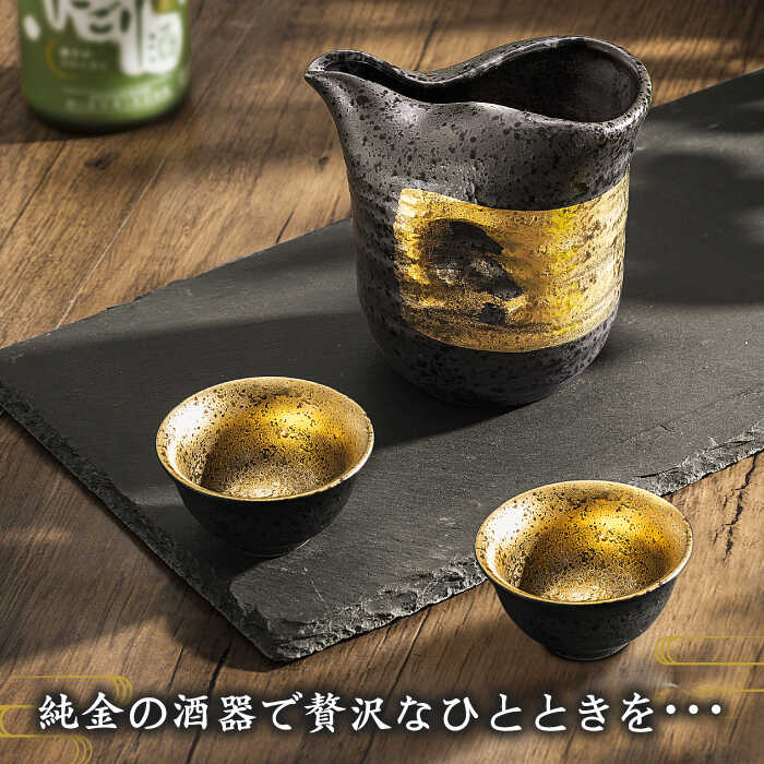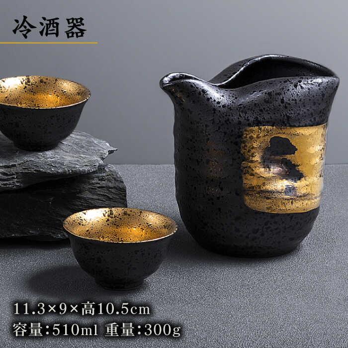 - 【ふるさと納税】【美濃焼】黒結晶片口金巻 冷酒器&平盃セット 【やまい伊藤製陶所】 酒器 おちょこ ゴールド [MCW003]
