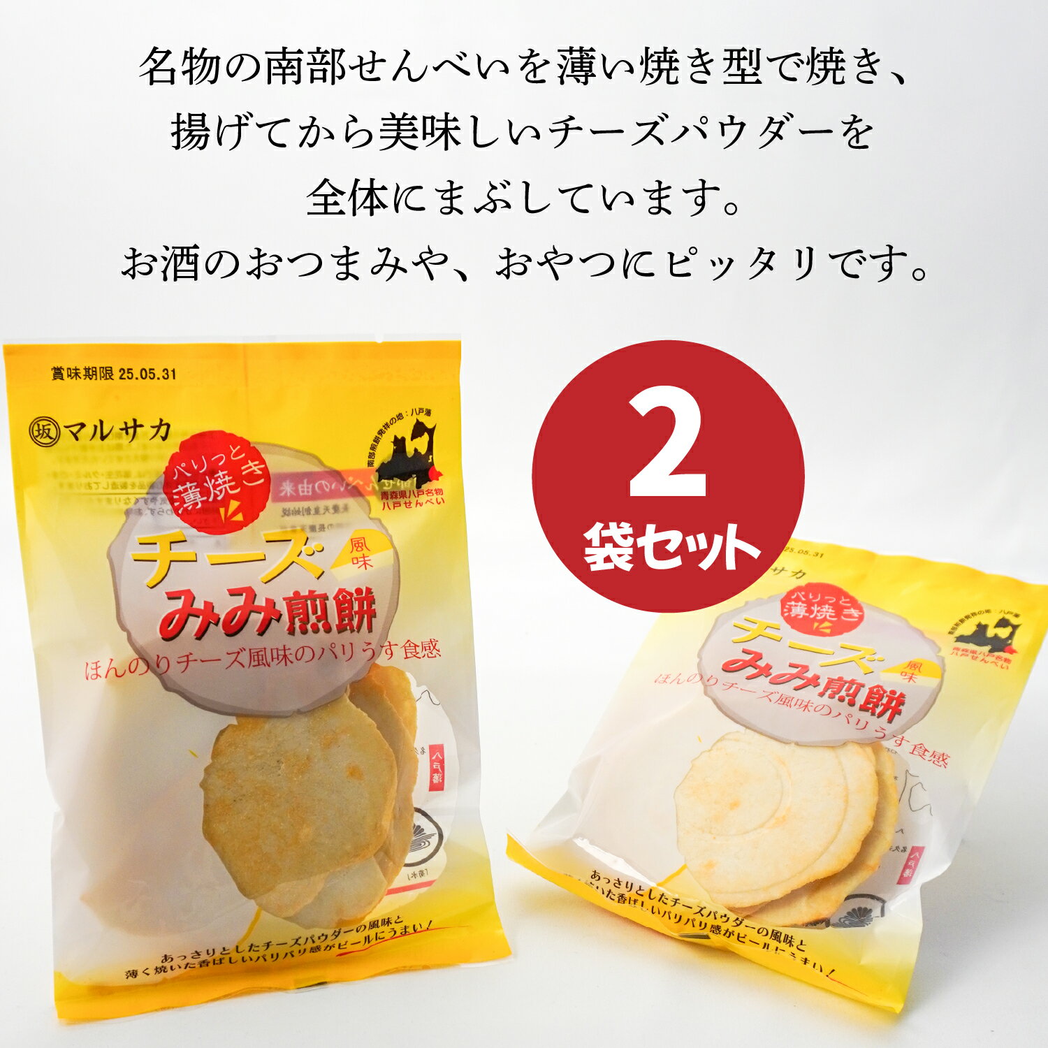 - 【ふるさと納税】<マルサカ煎餅>チーズみみ煎餅 2個セット 東北産 青森県産 八戸産 送料無料