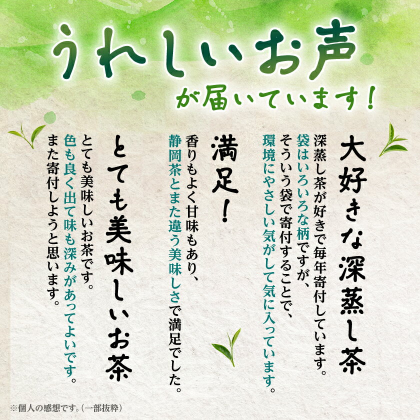 深蒸し掛川茶の1kgセットがもらえます。訳あり品として提供されるこのお茶は、100gずつの袋に分けられた10袋の大容量。袋のデザインや形は選べませんが、内容は一番茶100%の深蒸し掛川茶で、品質は確かです。山英の工場で丁寧に仕上げられ、HACCPの承認を受けた安全な製品です。お茶好きの方にとって、日常的に楽しむのにぴったりのセットです。お得に美味しいお茶を楽しみたい方におすすめです。