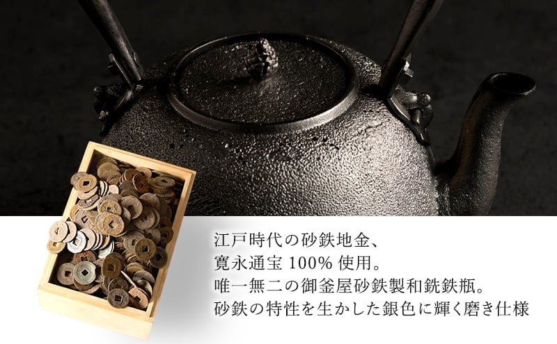 - オーダーメイド【南部鉄器】古銭砂鉄鉄瓶(こせんさてつてつびん) 磨き仕様 仁左衛門 鉄瓶 やかん 急須 伝統工芸品 最高級品 お祝い プレゼント 観賞用 岩手県 盛岡市 御釜屋 砂鉄製 鉄分 健康増進 鉄分摂取 お茶 美味しい 直火OK 錆びにくい