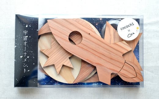 - No.242 宇宙オーナメント / 飾り インテリア 雑貨 ロケット 土星 三日月 星 木目 無塗装 千葉県