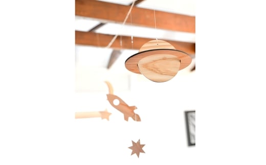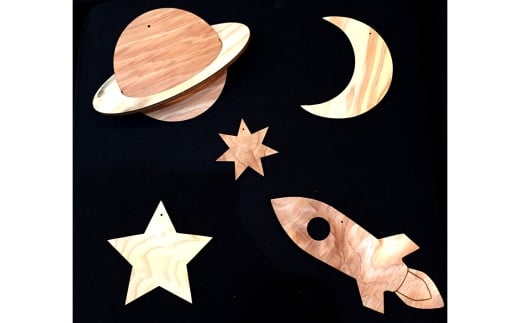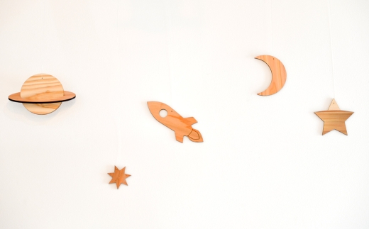 No.242 宇宙オーナメント / 飾り インテリア 雑貨 ロケット 土星 三日月 星 木目 無塗装 千葉県