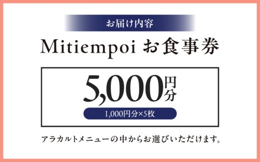 - Mitiempoお食事券 5,000円分(1,000円×5枚)