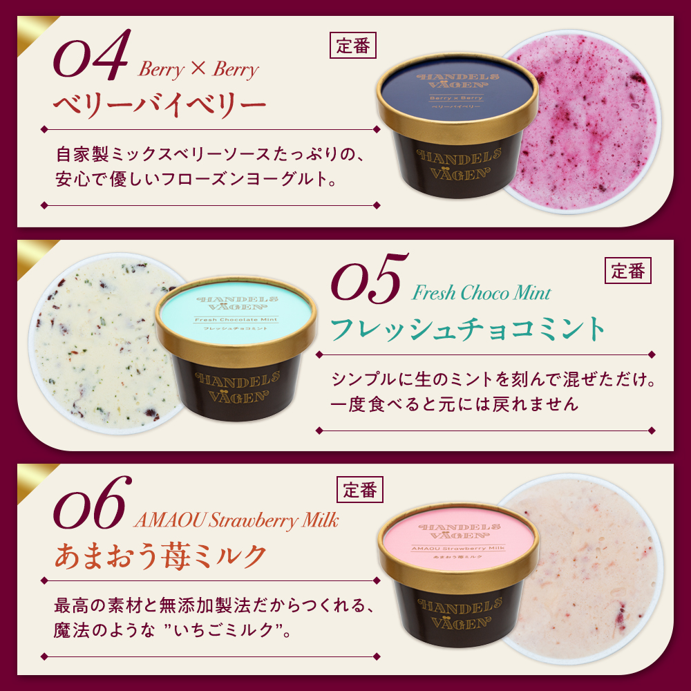 - ハンデルスベーゲン 無添加 アイスクリーム 食べ比べ 定番6個セット 濃厚 北海道牛乳 高級カップ スイーツ ギフト 詰め合わせ 人気 おすすめ 送料無料 バニラ ベリー ヨーグルト ピスタチオ あまおう チョコミント|神奈川県 横浜市