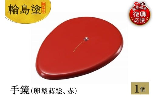 - 輪島塗 手鏡(卵型蒔絵、赤)