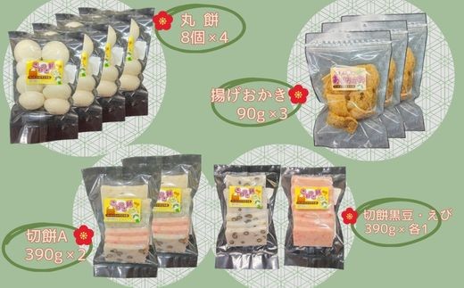 - AB2 おいしいしそうの杵つき餅「丸餅セット」 ( 丸餅 切り餅 揚げおかき 米菓 米 うるち米 もち米 お菓子 かきもち えび ごま 黒豆 塩味 セット お正月 もち )