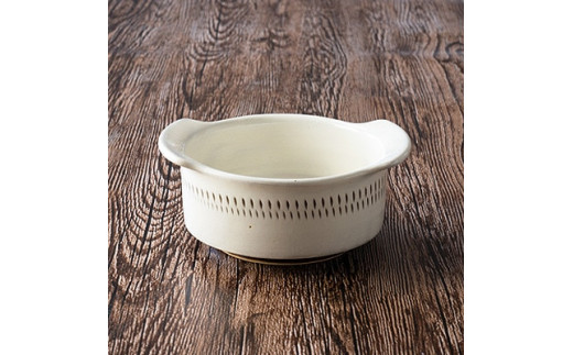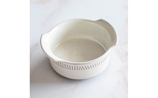 - AA111 小石原焼 カネハ窯 飛び鉋グラタン皿(白ツヤ×S)