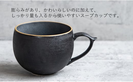 G462p 〈平戸嘉祥窯〉艶黒 スープカップ 2個セット 食器 コップ