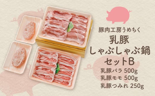 - W04-05 乳豚 しゃぶしゃぶ鍋Bセット(バラ・モモ・つみれ) 計1.25kg 豚肉 ぶたにく バラ肉 もも肉 つみれ 小間切れ 国産豚 人気 おすすめ スライス 豚しゃぶ セット 詰め合わせ しゃぶしゃぶ ブランド豚