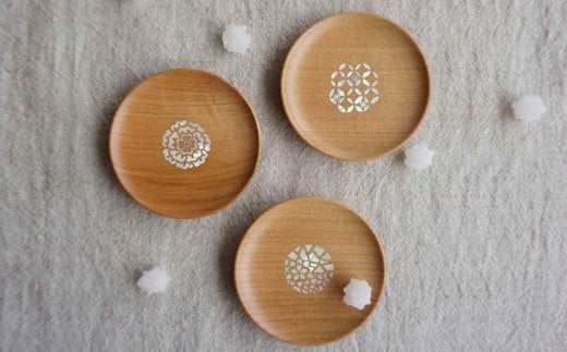 【貝象嵌】豆皿 花々 SS (花七宝) まめ皿 木製 木細工 手作り てづくり 夢工房 岩手県 北上市 C0599