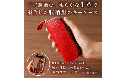 - 靴職人が作るラウンドキーケース(牛革)【配送情報備考】色:緑【 岐阜県 可児市 新生活 生活雑貨 職人 工房 レディース メンズ ユニセックス シンプル カジュアル ナチュラル 鍵 キー 皮 高級感】